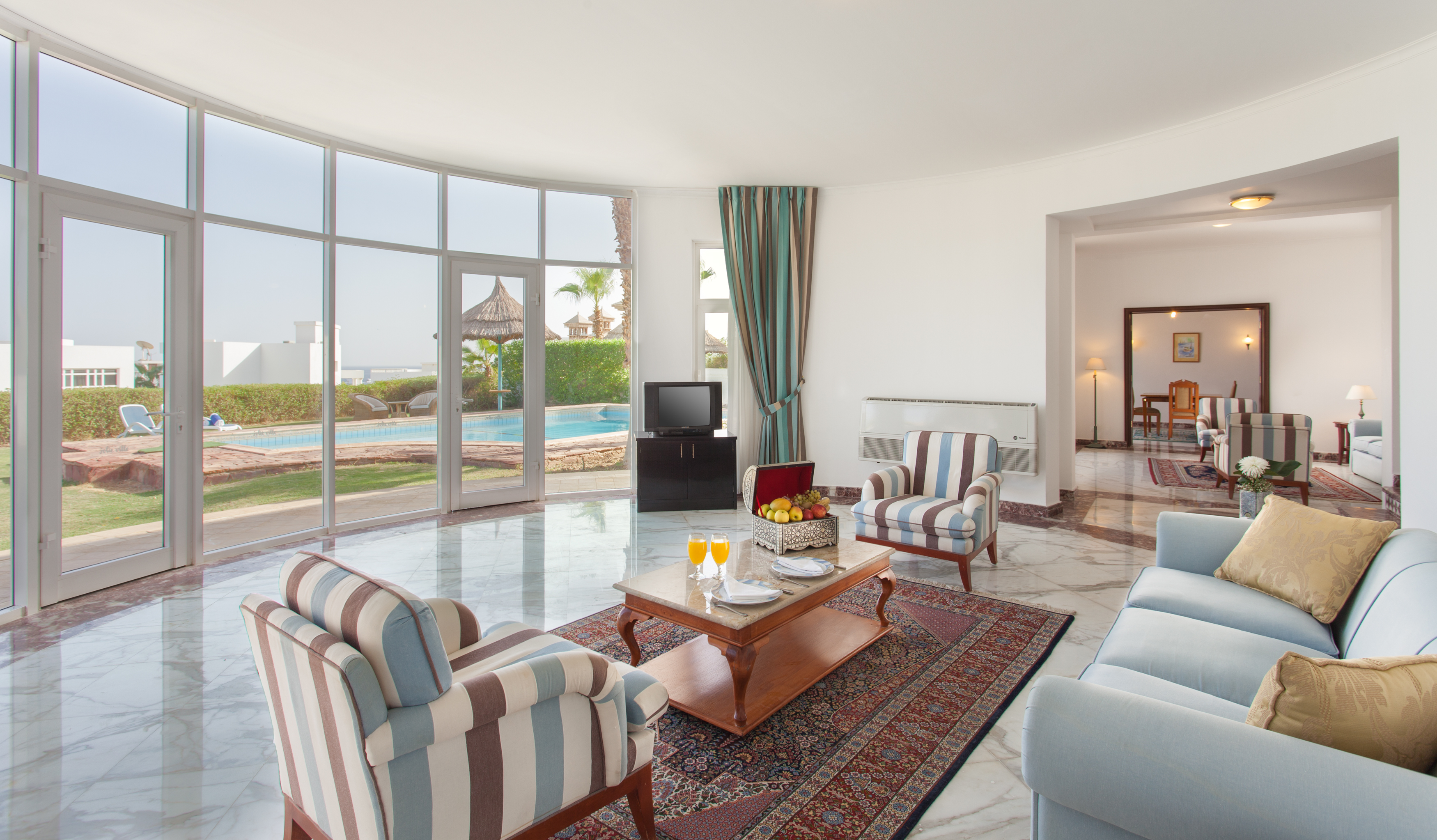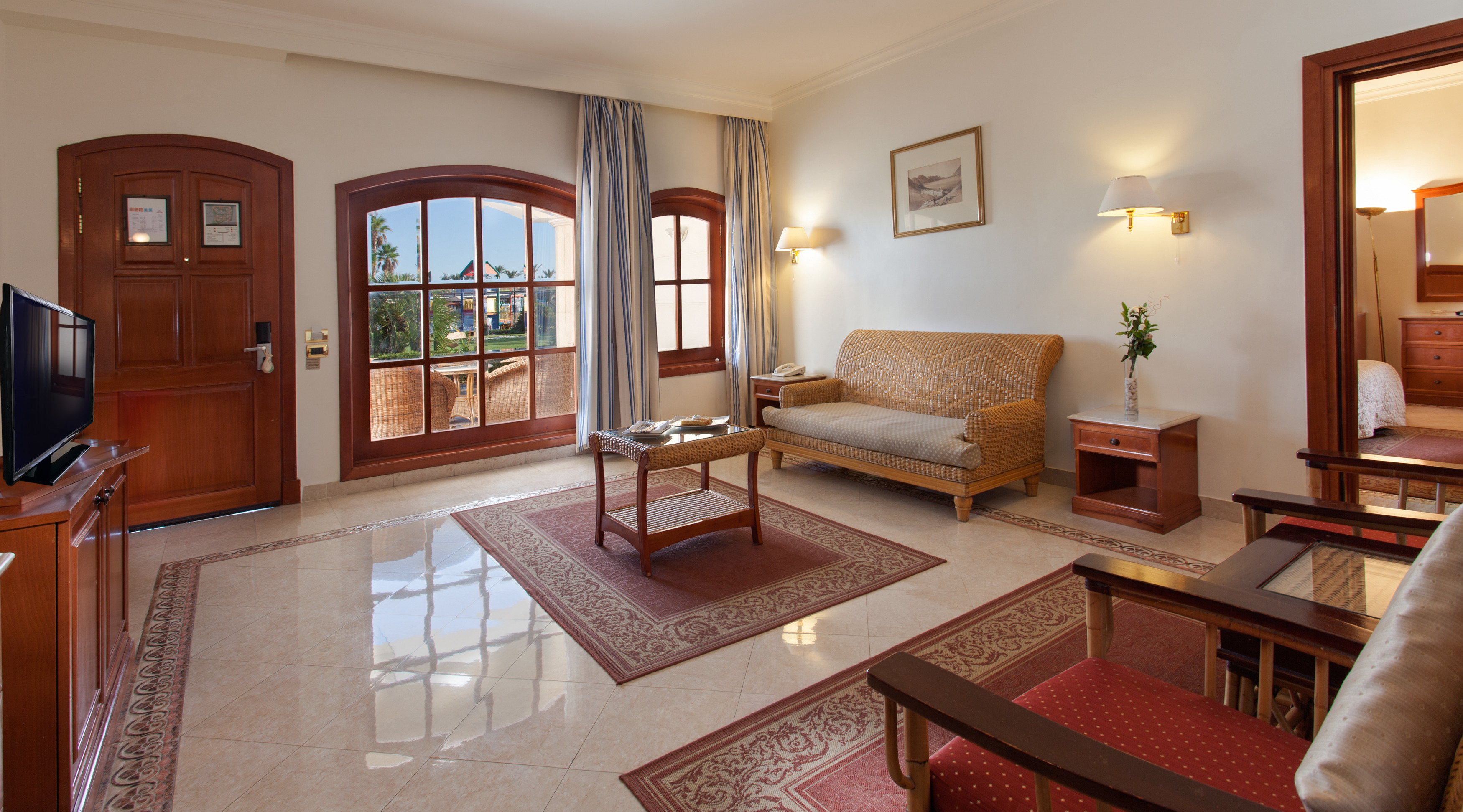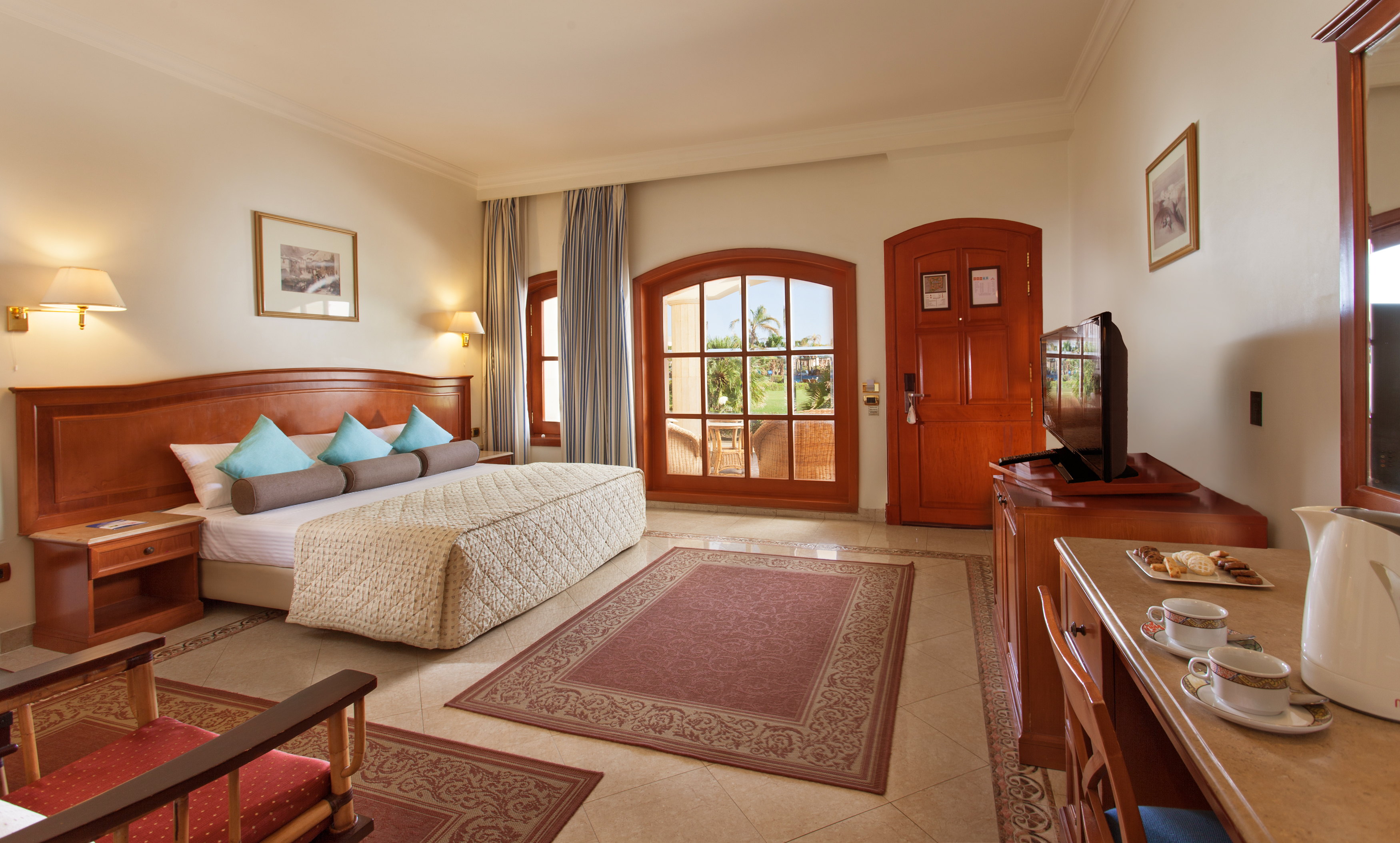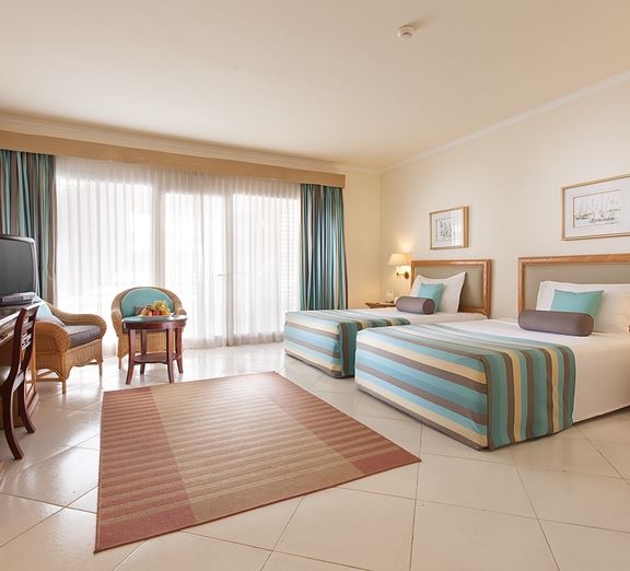 В комплектацию номера спальня с двуспальной или двумя односпальными кроватями, балкон с видом на море, санузел с душем/ванной. В распоряжении гостей кондиционер, телевизор, телефон, мини-бар, сейф, набор для приготовления чая/кофе, письменный стол, фен, гигиенические принадлежности.