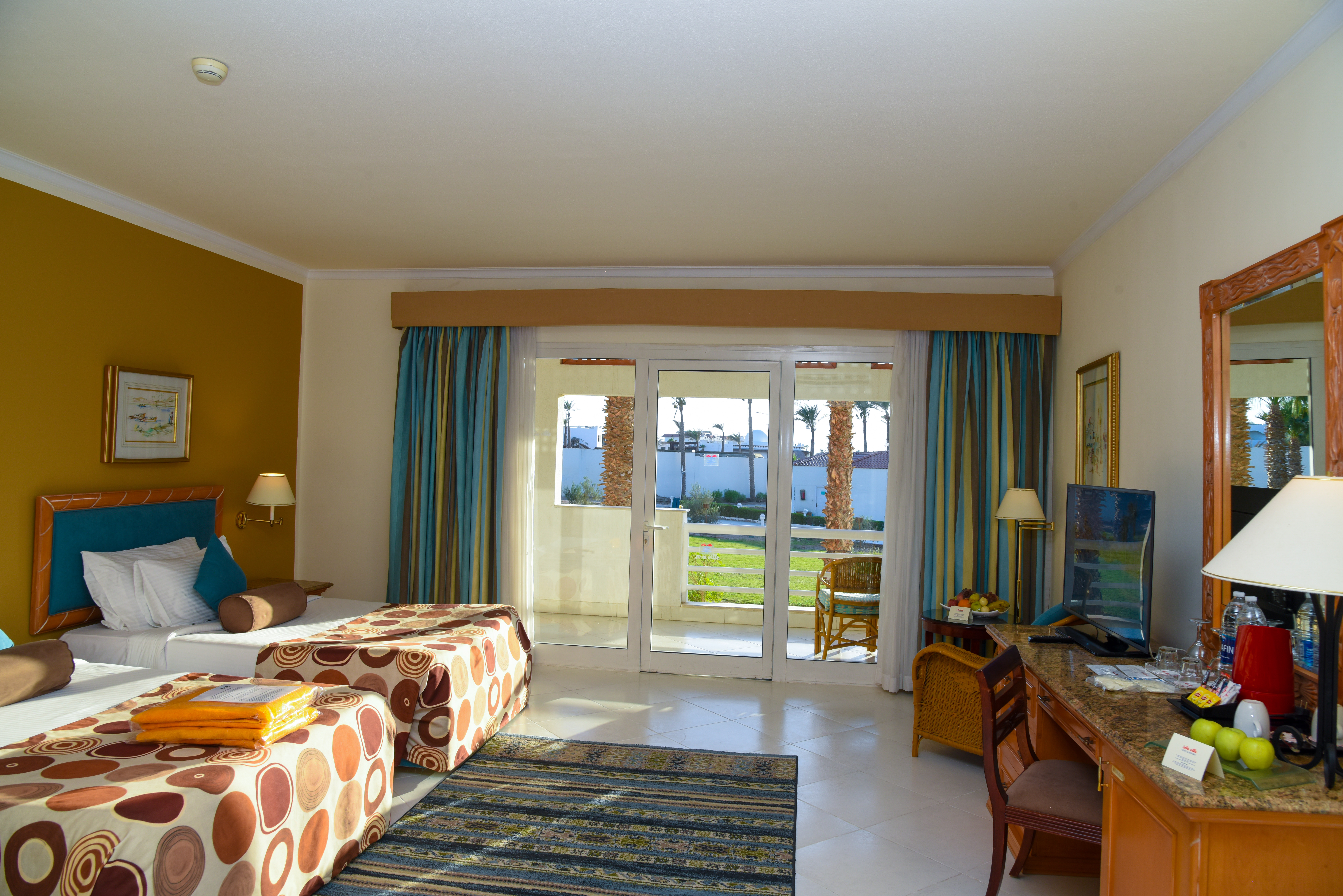 Однокомнатный номер с балконом и видом на бассейн. В числе удобств мини-бар, чайные принадлежности, кондиционер, телефон, рабочий стол, сейф, телевизор. Ванная комната с душем/ванной, набором гостиничной косметики, феном. Для размещения гостей двуспальная или две односпальные кровати.