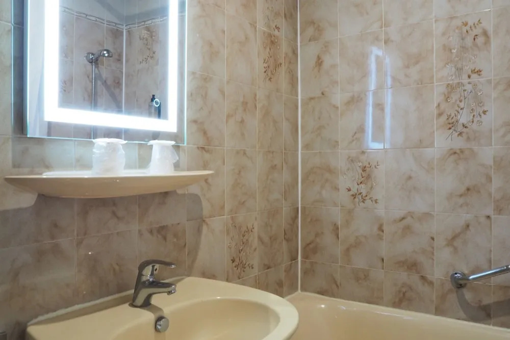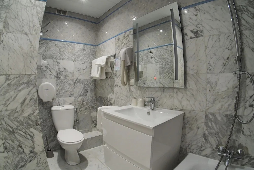 Отель находится в тихом районе, хотя недалеко от набережной. В приемной очень просторно. Стандартный завтрак. Размер туалета был небольшим.