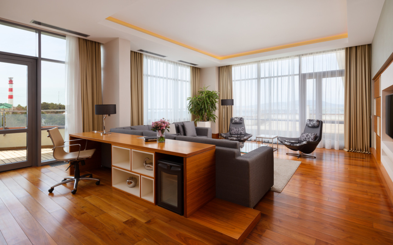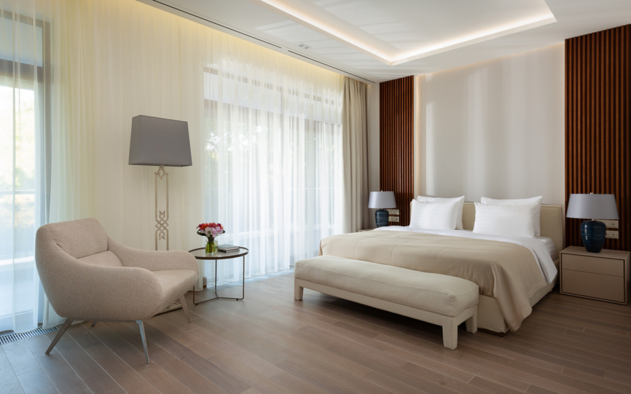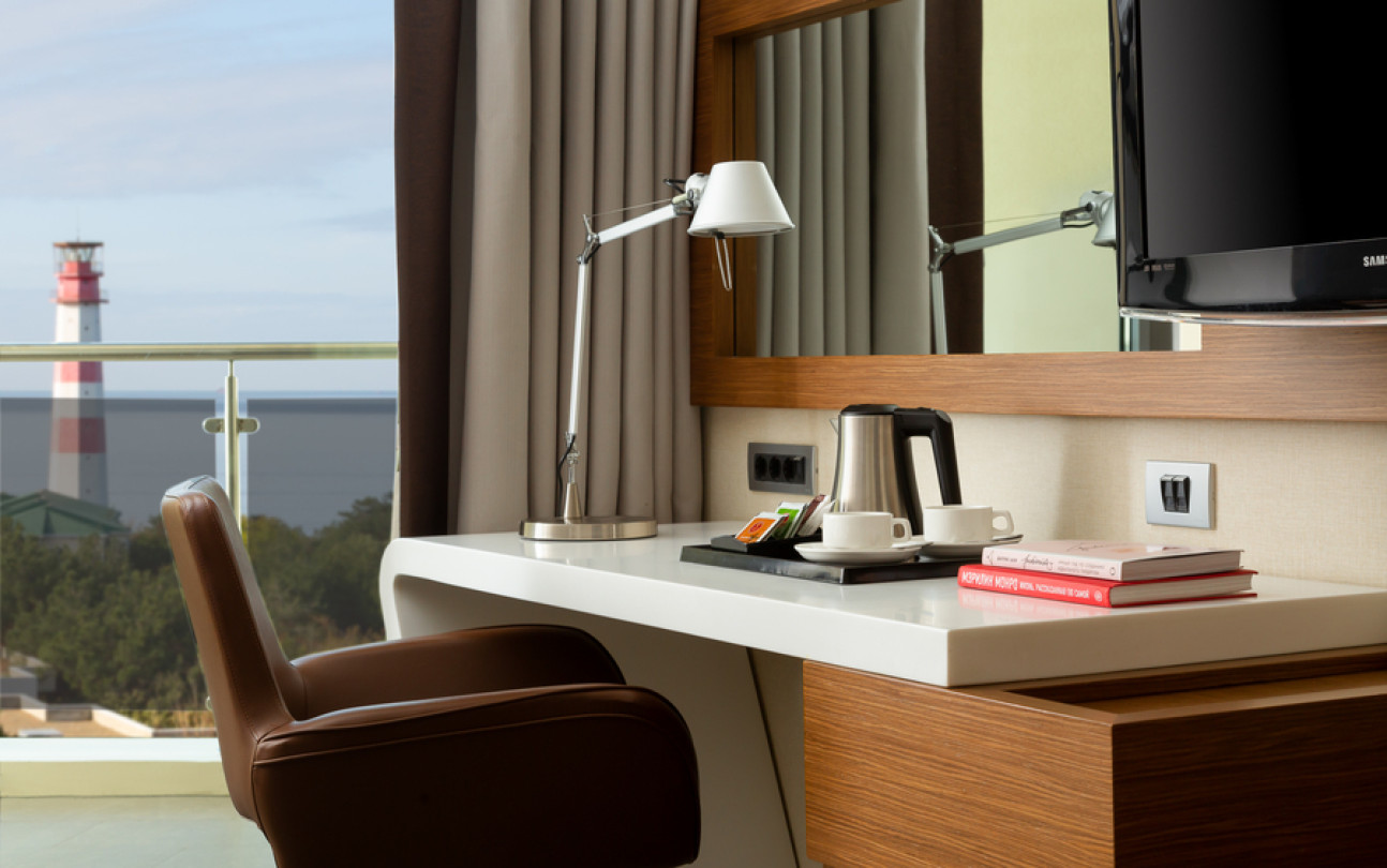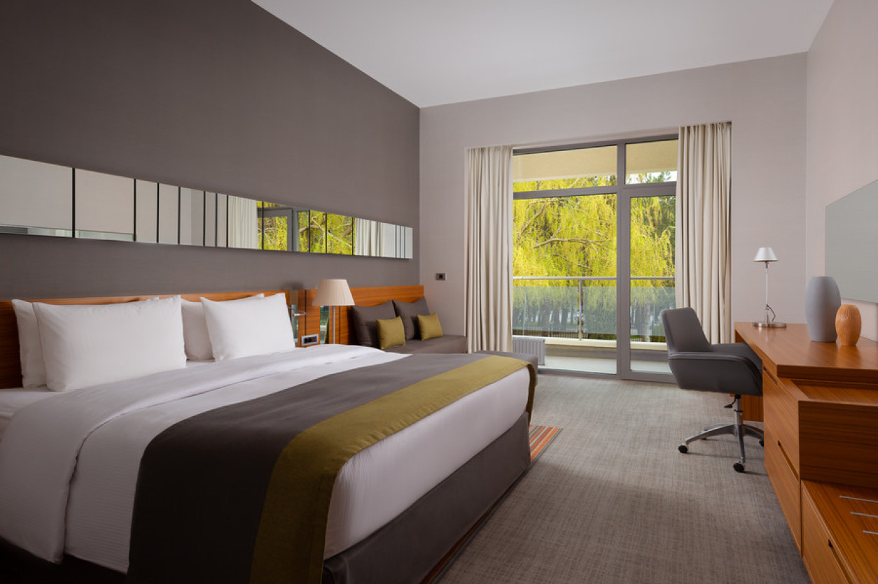 Отдыхали в этом отеле семьей в конце июля. Сам отель оставил положительные впечатления, очень чисто, приветливый персонал, хорошие номера, очень зеленая ухоженная территория и вкусные, разнообразные завтраки! Хорошее расположение вдали от шума, красивая набережная. Понравился сам город, он какой то современный, уютный, вся набережная в соснах! Но по поводу пляжа все неоднозначно : пляж общий, он как бы отгорожен лентами отеля и есть охрана, но это только для вида, все просто заходят и лежат на берегу, соответственно в море куча людей! Хорошо , что он находится на краю набережной, где море чистое.Есть шезлонги, полотенца, водичка, сделали удобный вход в море, кафе от отеля, но нет ощущения 5 звездочного отдыха, куча людей в море и на берегу, как на обычном общественном пляже. Для чего там стоит охрана не понятно.