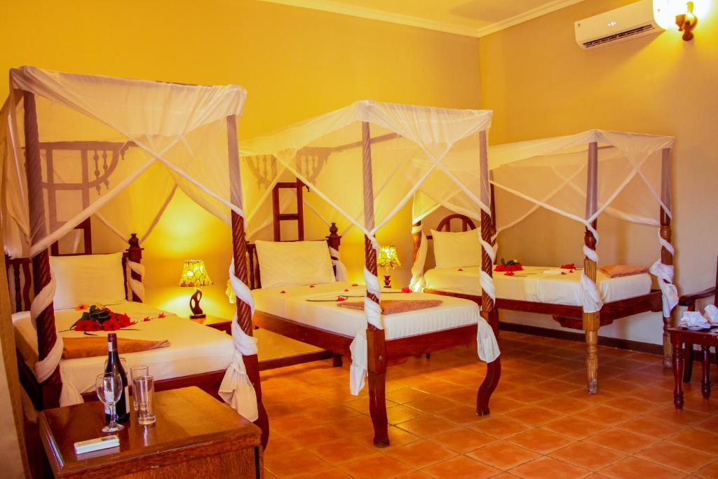 Отдыхали в отеле «Мандарин» Кизимкази с супругой с 19 по 28 февраля.. Опыт до этого: Греция, Турция, Египет, обязательно 5*, ALL и UALL Отель маленький, одноэтажный, около 10-15 бунгало на 1-2 семьи, постоянно на территории отеля было до 10 семей... Никакой суеты и толкотни на пляже (свой пляж), у бассейна, или в ресторане... Отель, для тех, кто любит тишину и покой.. Кухня – вне всяких похвал: выбор блюд небольшой, но постоянно была рыба, говядина и курица, морепродукты, креветки на гриле( пару раз).., и все очень-очень вкусно приготовлено! Хорошее пиво и достойное сухое красное вино! Особая благодарность Шеф-повару, г-ну АМР, девочкам (и мальчикам) с кухни и в зале..! Посещение ресторана, особый случай.. На входе, утром, в обед и вечером нас обязательно встречал г-н АМР, желал приятного аппетита.., в процессе, мог подойти, спросить все ли ОК?.. Спасибо девочкам, которые убирали номер (каждый день), мальчикам у бассейна. Один из них залез на пальму(на территории отеля), скинул несколько кокосов, почистил,открыл и угостил нас... Отдельная благодарность местному врачу г-ну ИДДИ(надеюсь верно услышал и написал имя)! На второй день, после приезда, во время отлива пошли с женой за отливом и жена наступила на морского ежа... иголки воткнулись в ступню, сломались и остались в ней.. Мы обратились на ресепшн, нам прислали г-на ИДДИ, и он их достал, обработал раны и тем самым, «спас жену, и наш дальнейший отдых..»! Со всей ответственностью утверждаю: отдых в «Мандарине» превзошел все наши ожидания. Ощущения можно передать двумя словами: «ПОЛНЫЙ ВОСТОРГ»!!! Уезжая, мы обещали вернуться.., и мы обязательно вернемся..!